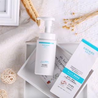 2、擠出適量璨金兒氨基酸潔面泡泡,把泡泡涂在臉上。